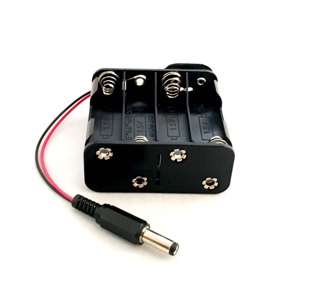 You can use the removable snap plug to 2.1mm plug (same as the Arduino UNO) or your own leads.