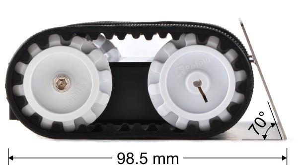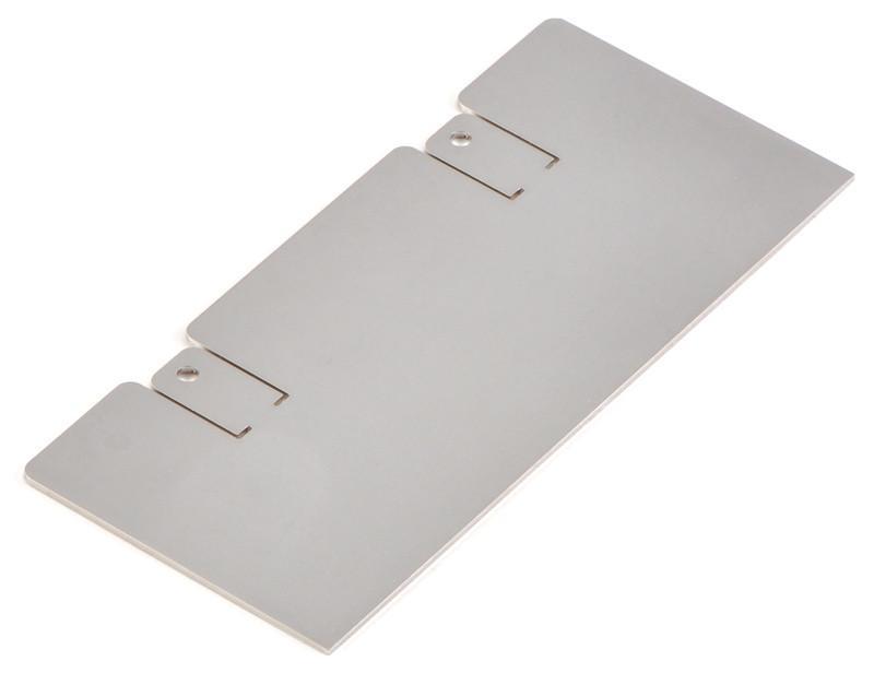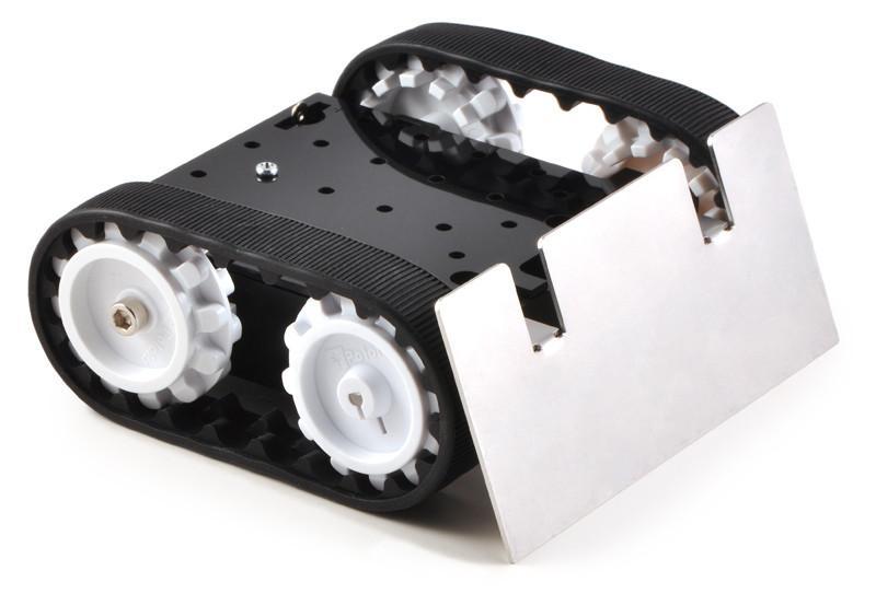 This 0.036″-thick stainless steel plate can be mounted to the front of the Zumo chassis to create a slanted, bulldozer-like blade for pushing around objects, such as other mini-sumo robots.