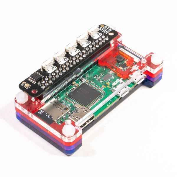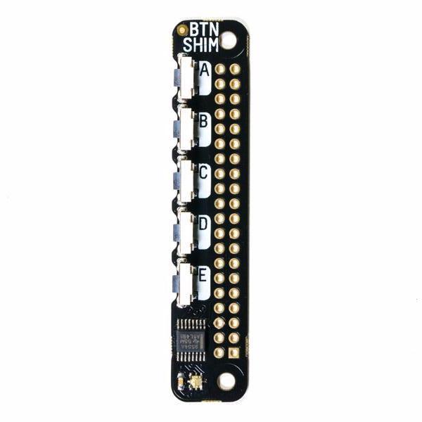 Button SHIM gives you five handy, physical buttons and an RGB status LED, and it's HAT and pHAT-compatible!