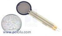 This force-sensing resistor (FSR) from Interlink Electronics is a passive component that exhibits a decrease in resistance when there is an increase in the force applied to the circular active area (0.5"/12.7mm diameter), allowing you to create a sensor that is able to detect force or pressure.