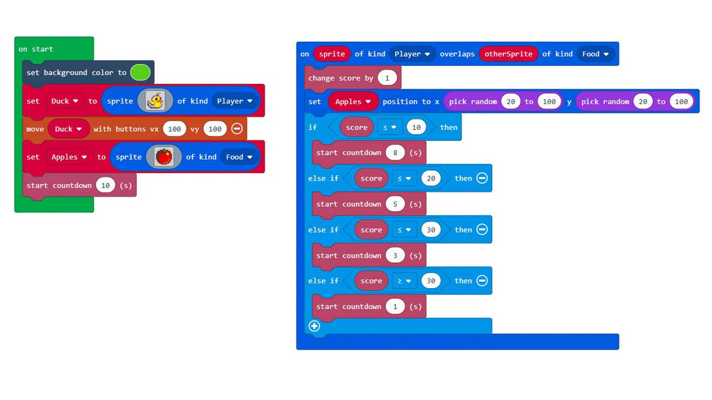 The MakeCode Arcade editor has been designed to allow everyone, from beginners to experienced game enthusiasts, to create retro arcade games to run in the browser or on handheld consoles. It consists of drag and drop blocks that snap together to form programs. You can also write code for ARCADE in JavaScript, and there's a Python editor coming soon!