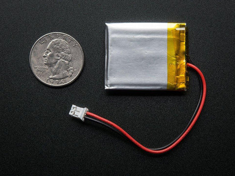 Lithium ion polymer (also known as 'lipo' or 'lipoly') batteries are thin, light and powerful. The output ranges from 4.2V when completely charged to 3.7V. This battery has a capacity of 500mAh for a total of about 1.9 Wh.