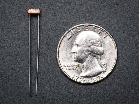 CdS cells are little light sensors. As the squiggly face is exposed to more light, the resistance goes down. When its light, the resistance is about 5-10KΩ, when dark it goes up to 200KΩ.