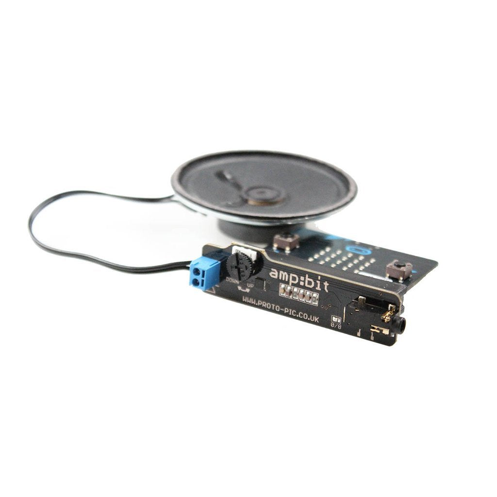 The Amp:bit is the easiest way to connect a speaker or headphones to your micro:bit.