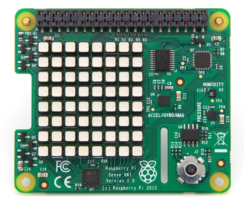 The Sense HAT supports a whole host of projects for the Raspberry Pi, it can measure how fast is the Pi itself travelling (i.e. measure your speed), how hot is it? how humid is it? (air humidity), which direction is the Raspberry Pi facing?