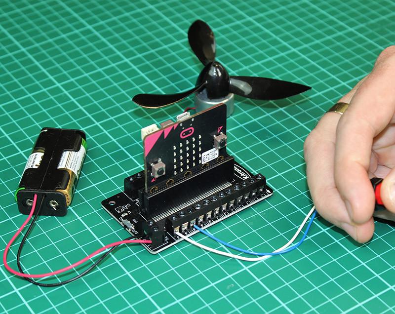- The microbit connects to the board via an edge connector that the microbit slots directly into, either way around.