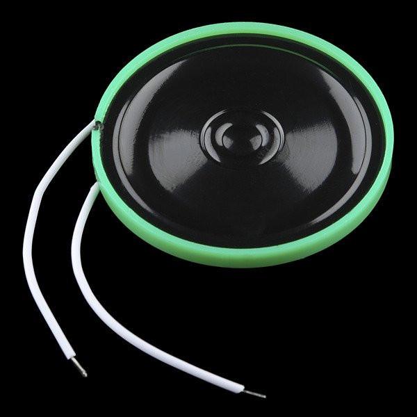 This 0.25W, 8Ohm speaker is only 40mm in diameter and just over 4mm thick, the same kind you might find in one of those “talking greeting cards”.